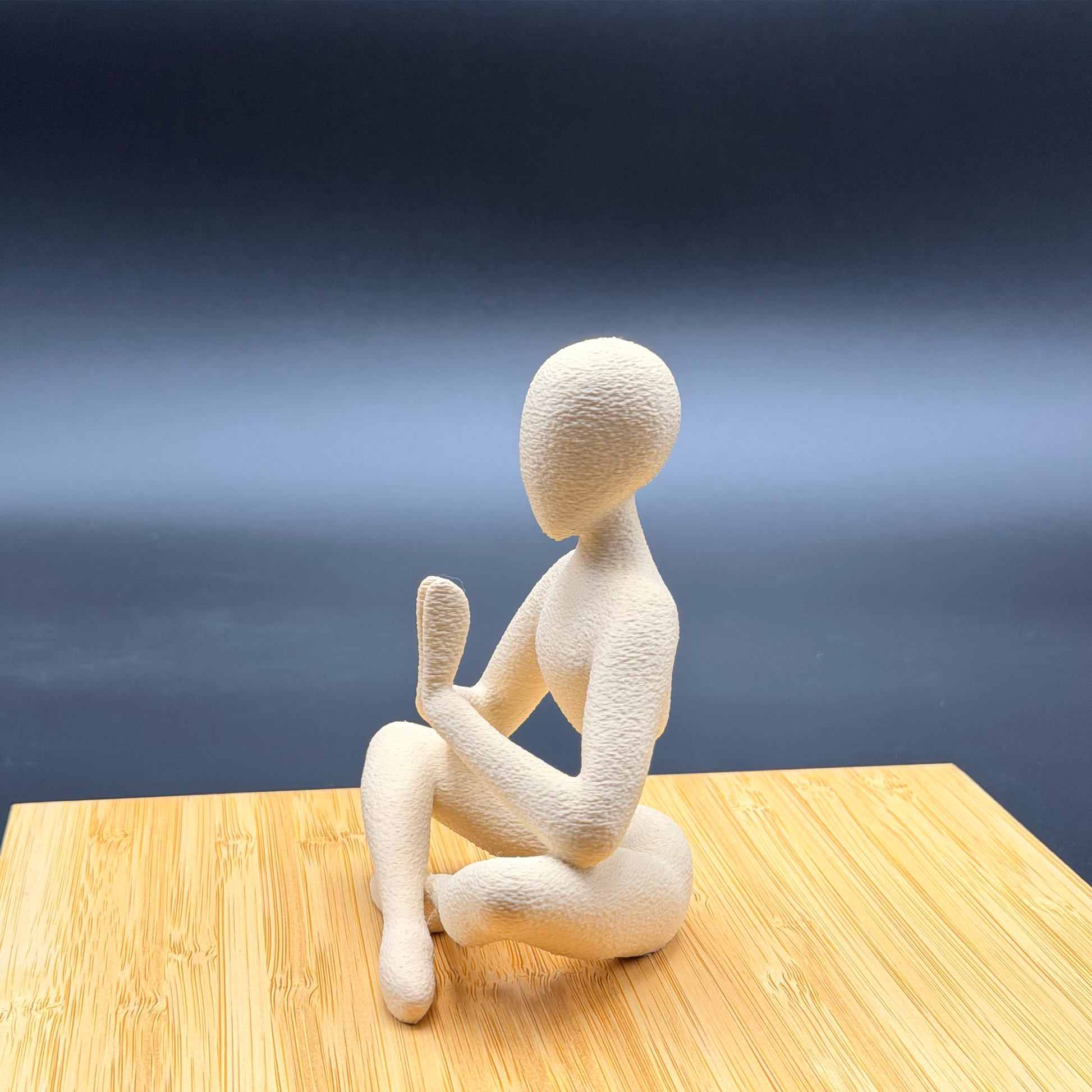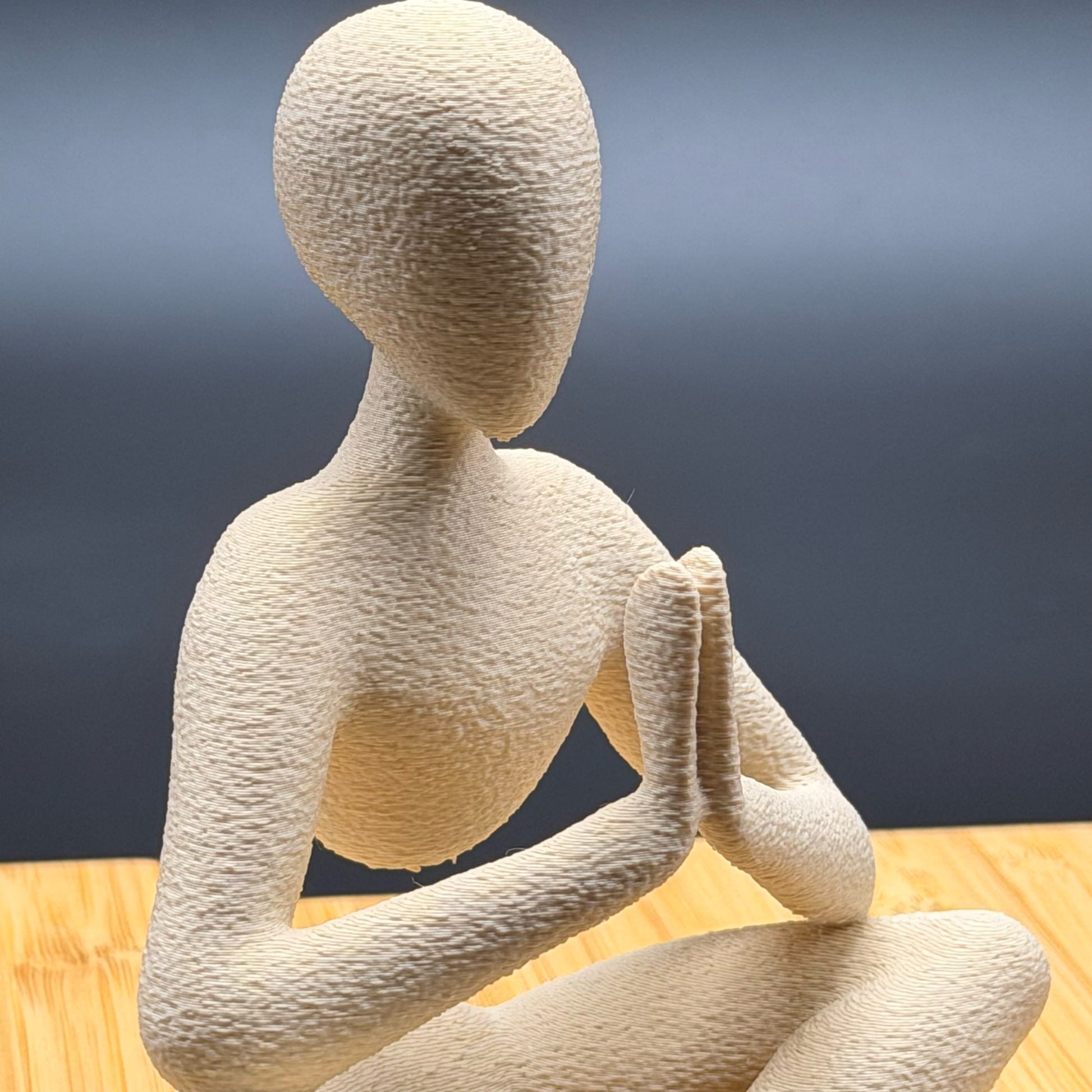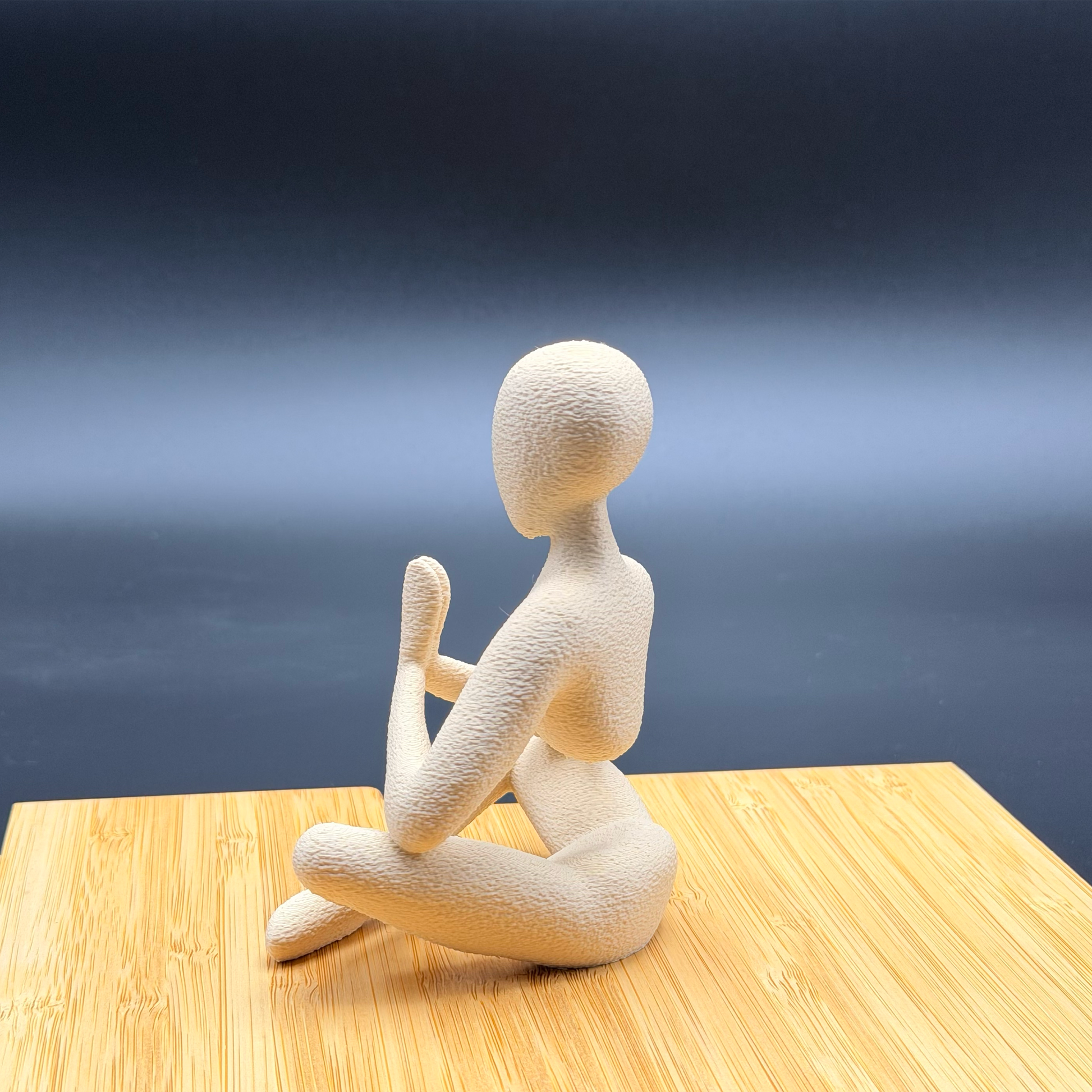 A serene 3D-printed sculpture featuring a minimalist figure in a meditative pose with hands in prayer. Its textured surface and calming design make it a perfect decorative piece for yoga studios, meditation spaces, desks, or modern home interiors.
