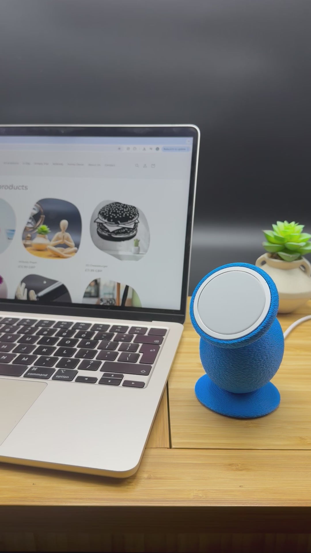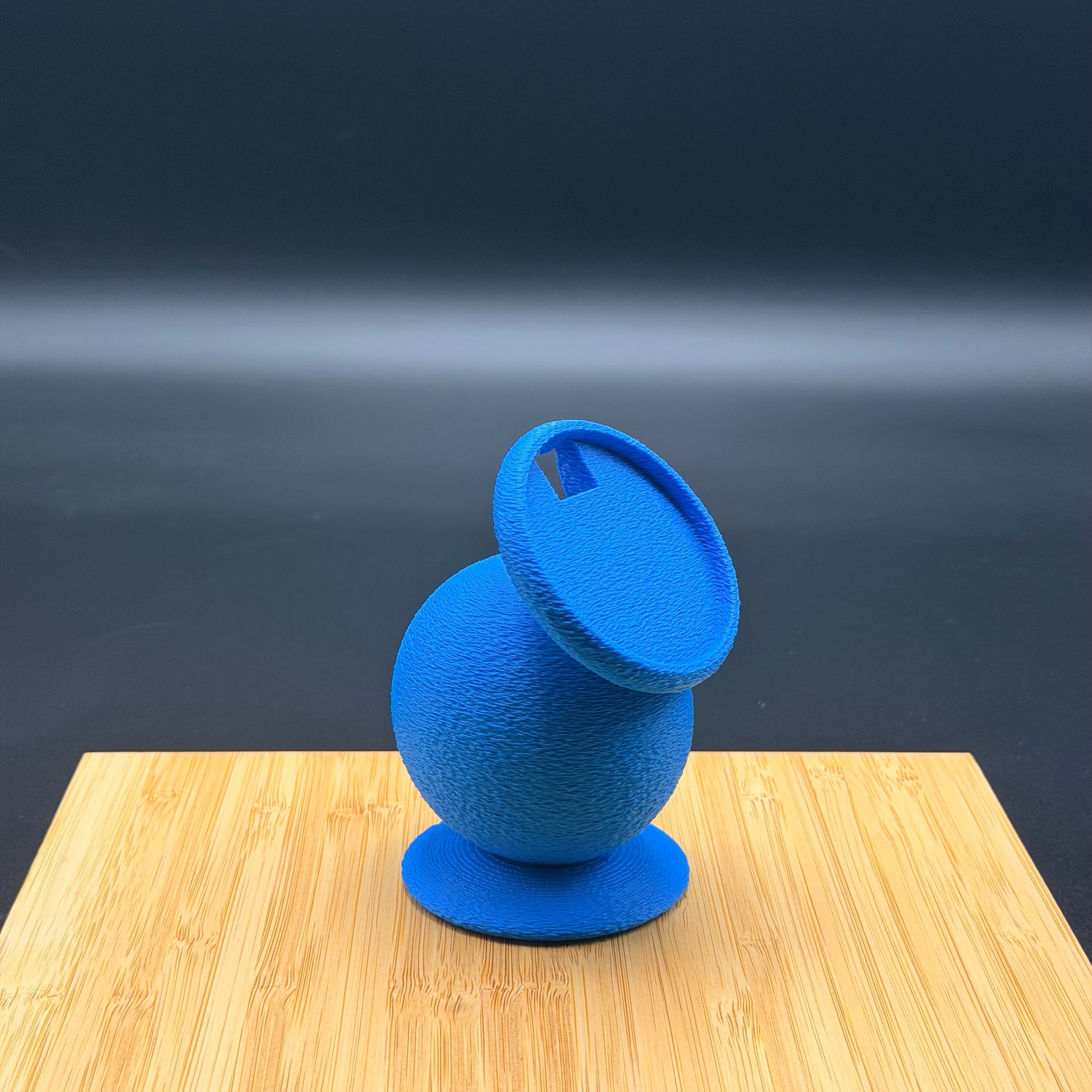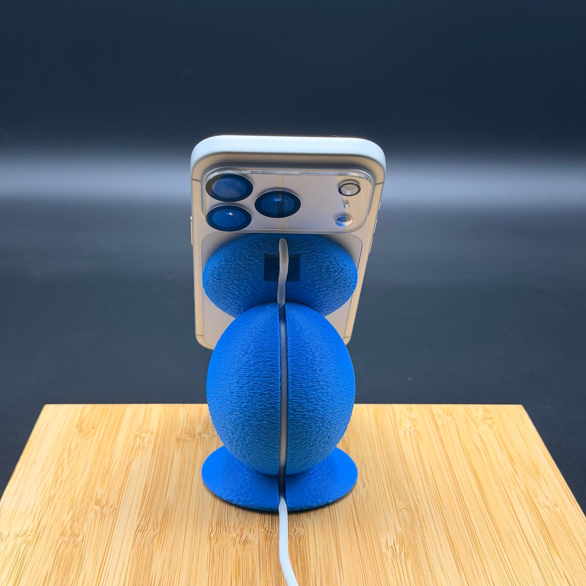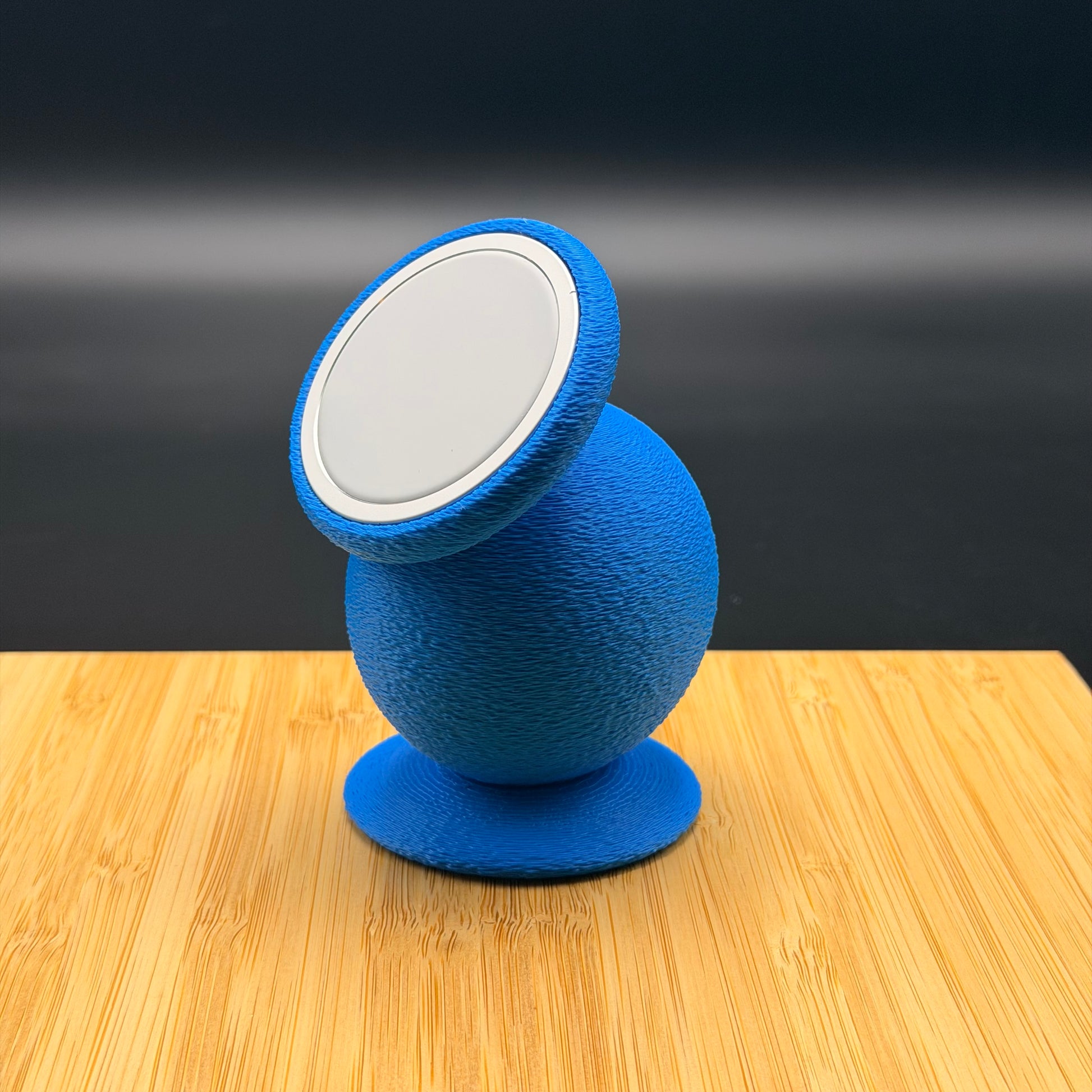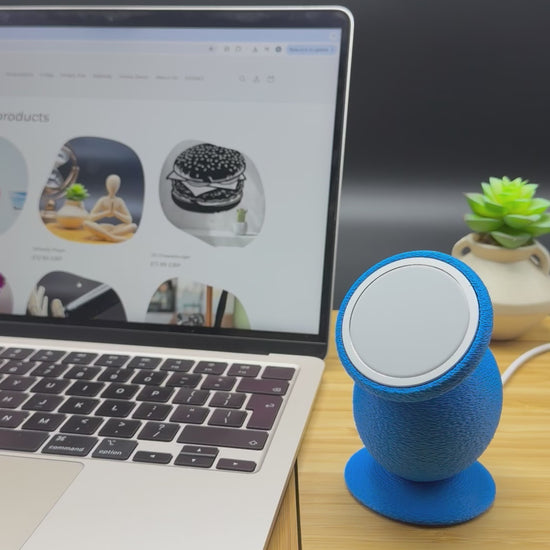 Wrapped in a vibrant electric-blue, fabric-like texture, FLOOF DOCK feels soft, playful, and completely unlike boring plastic tech accessories. Its sculptural, egg-shaped body and angled magnetic face give it a modern, almost character-like presence — part gadget, part desk companion, it's like a tiny alien pet just for you and your phone.